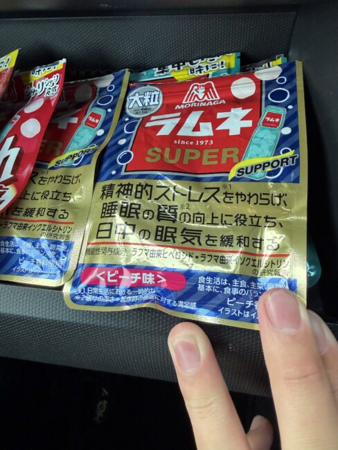 そう。助手席のダッシュボードに大量のラムネ笑