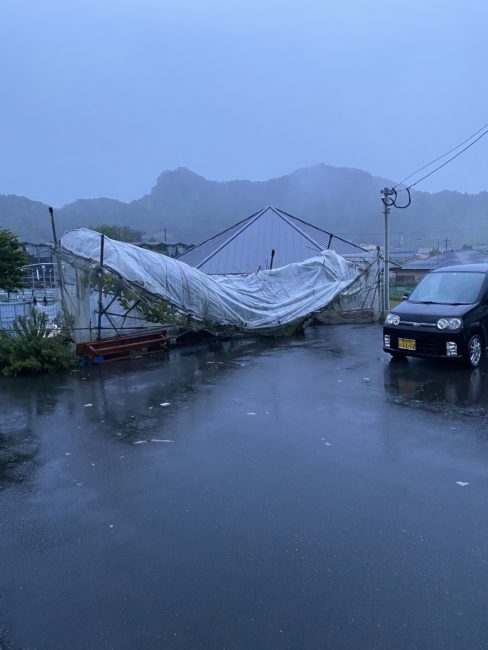 会社行ったら、売れ筋商品マスカットくんのハウスが倒壊してるし