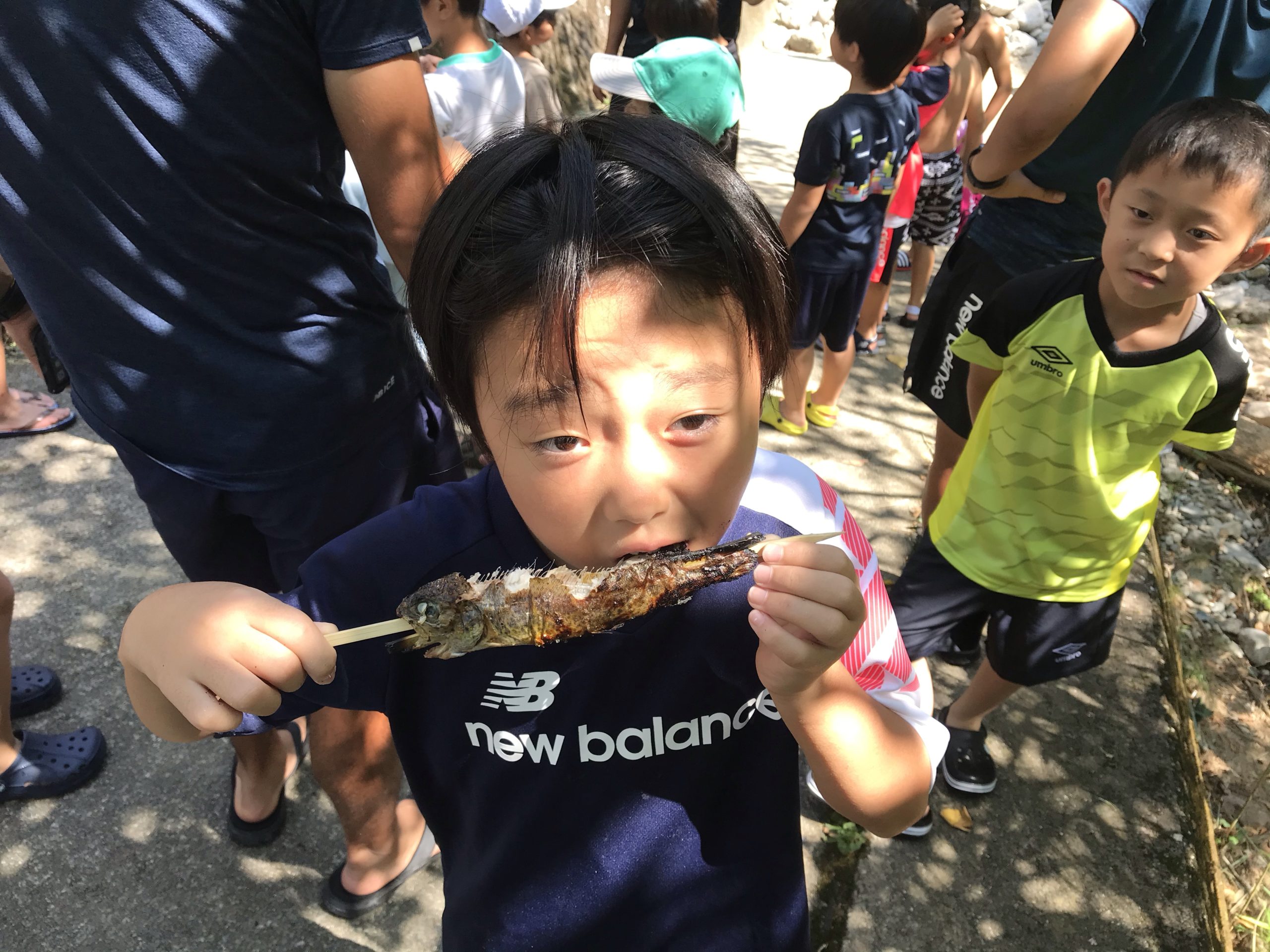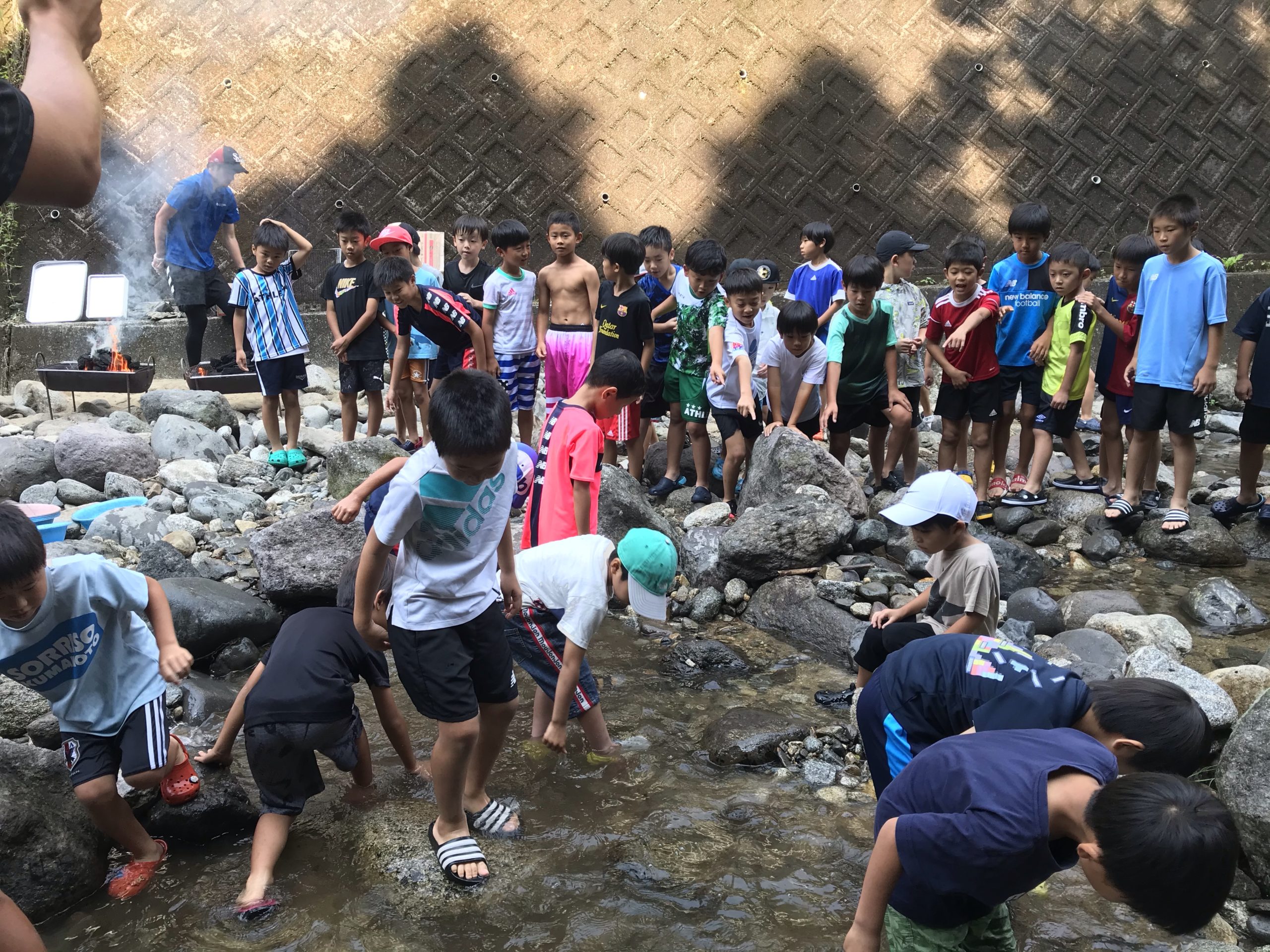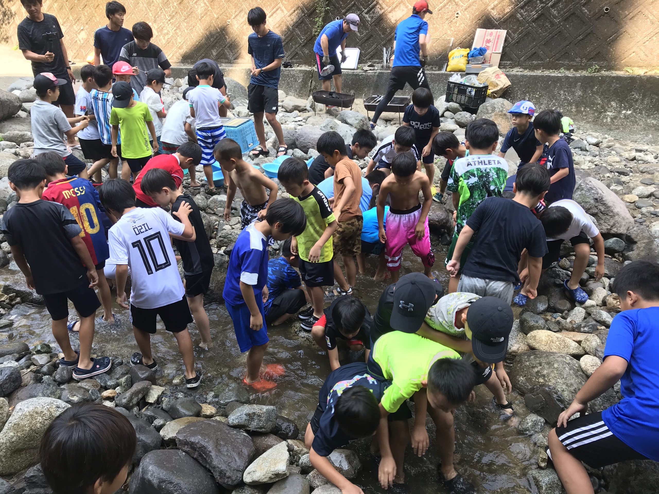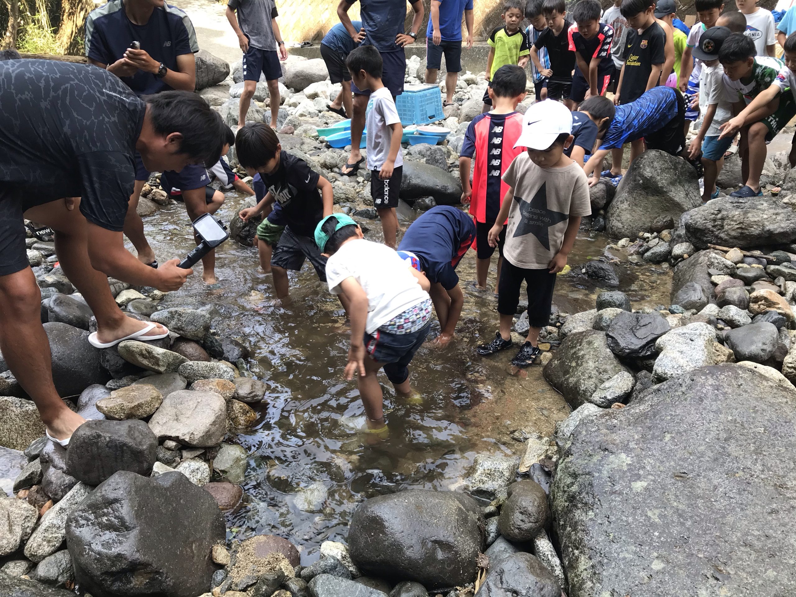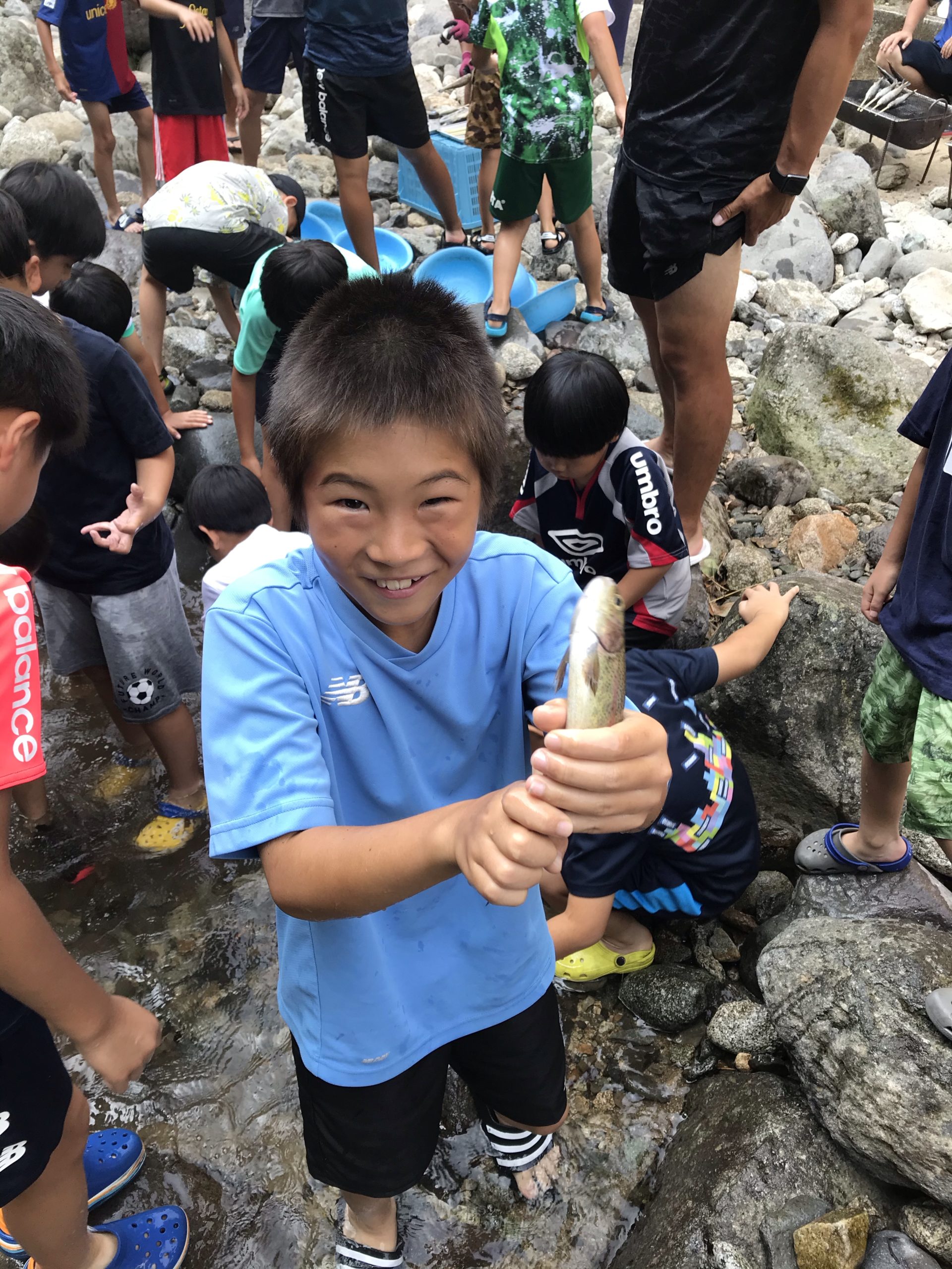 川遊び、ニジマスの掴み取りからスタート