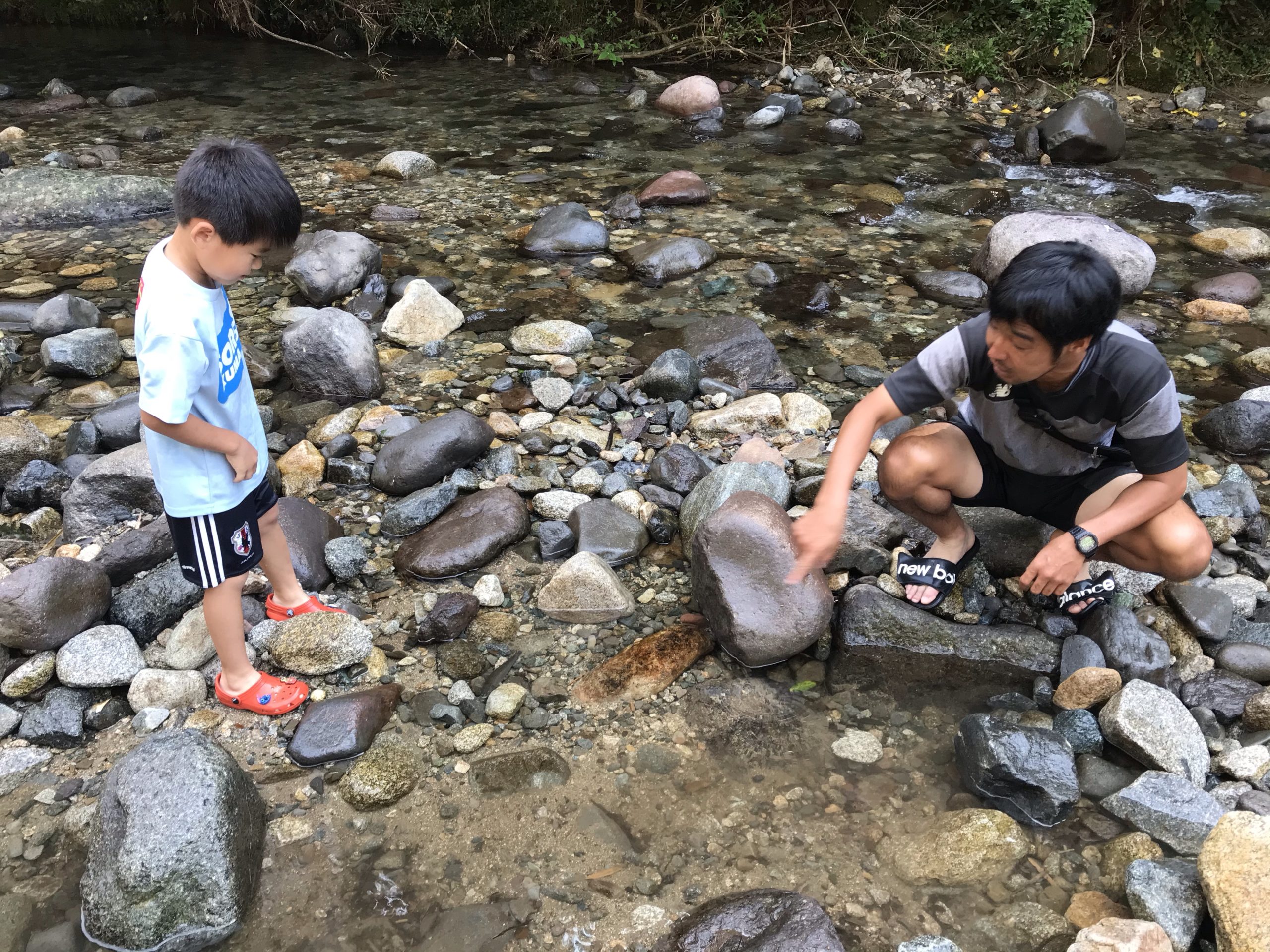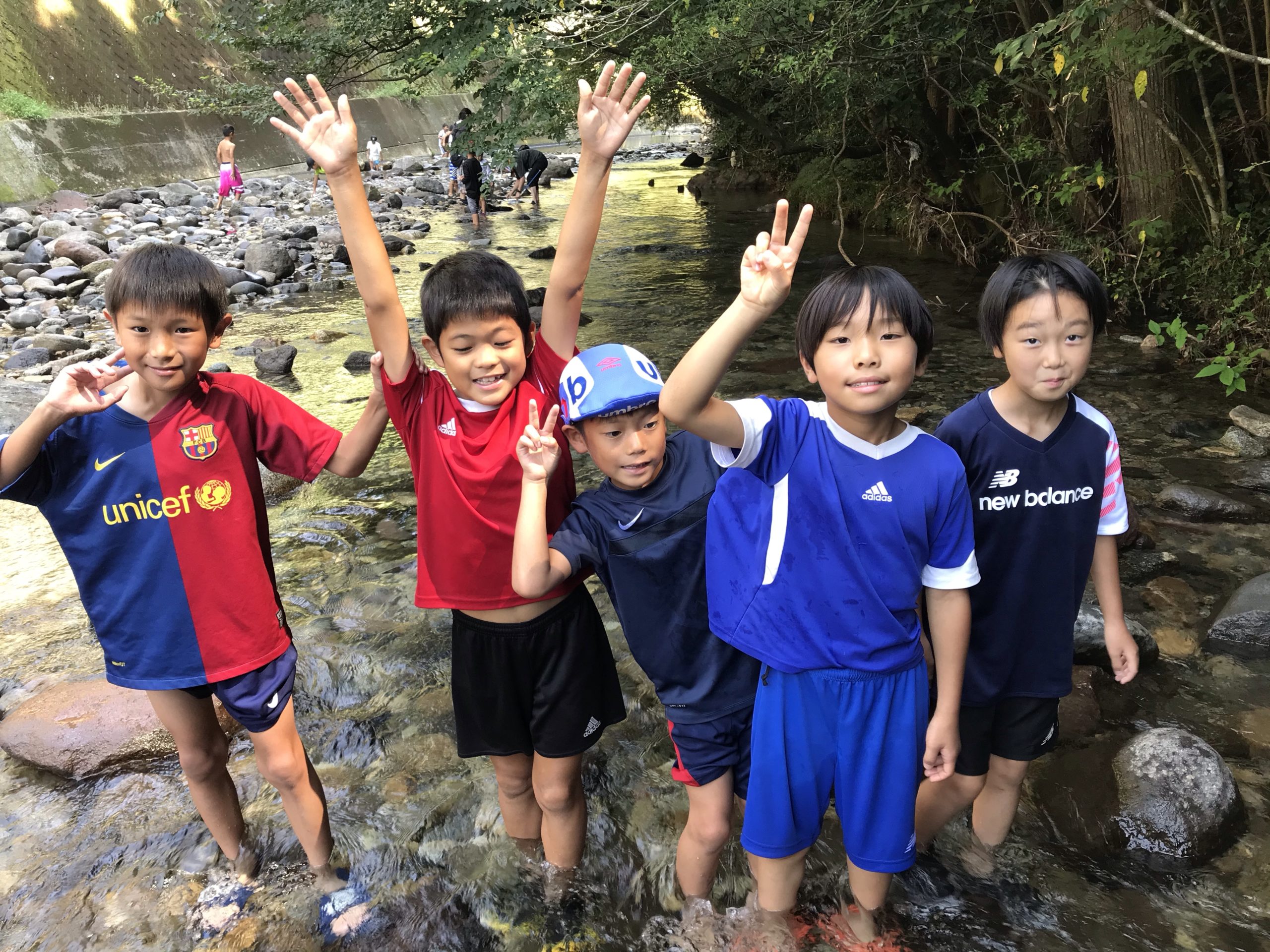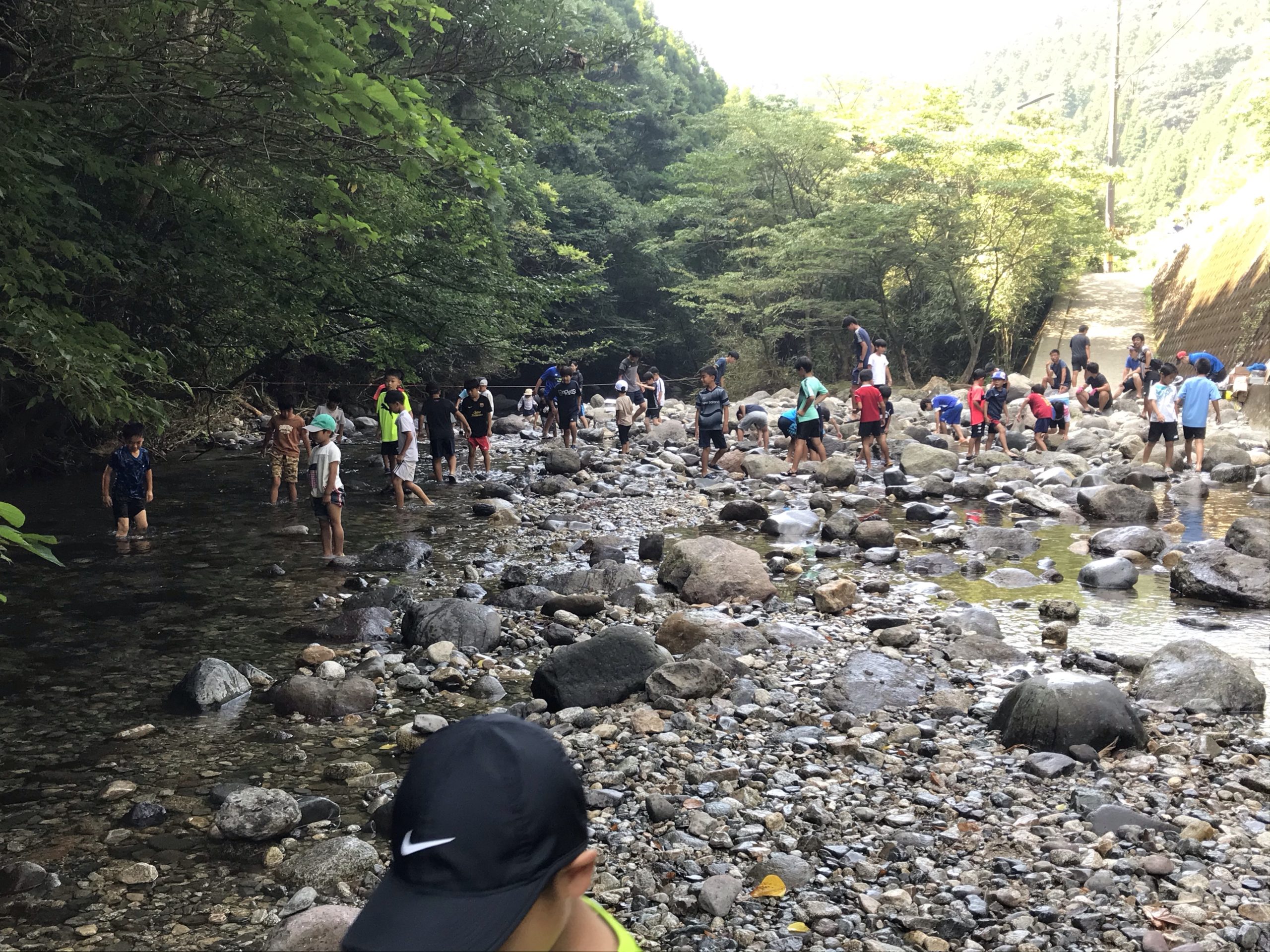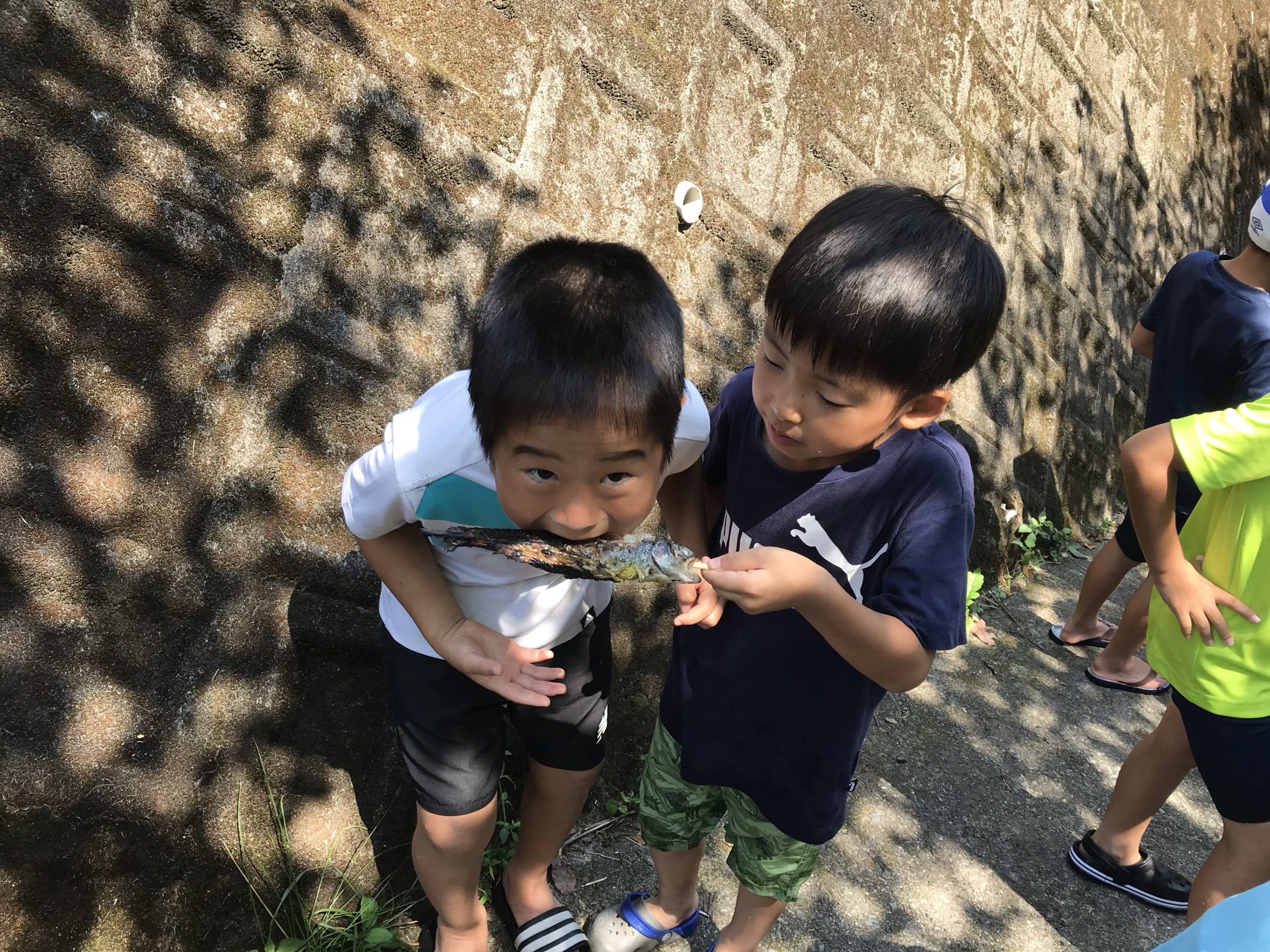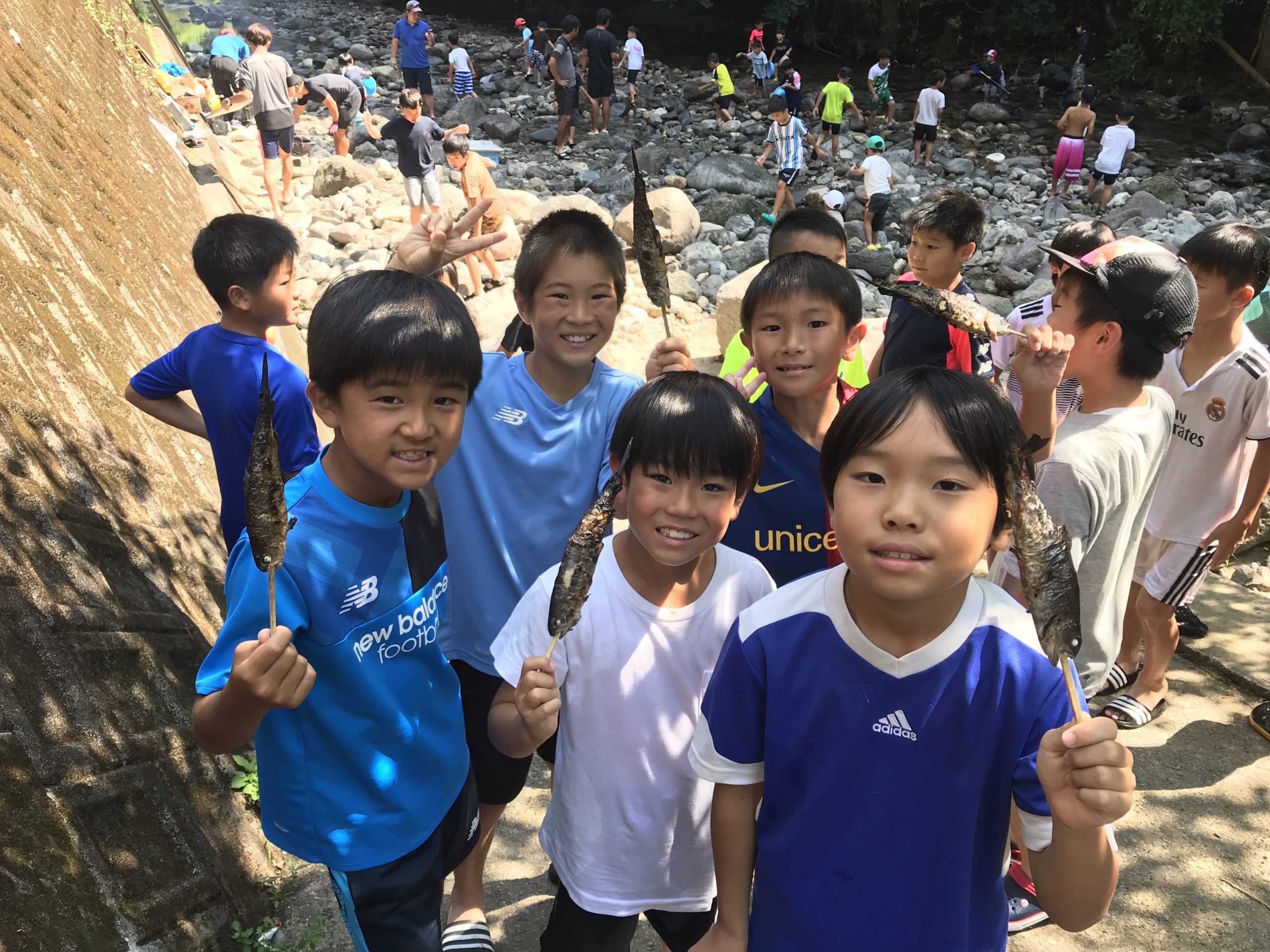 川遊び、ニジマスの掴み取りからスタート