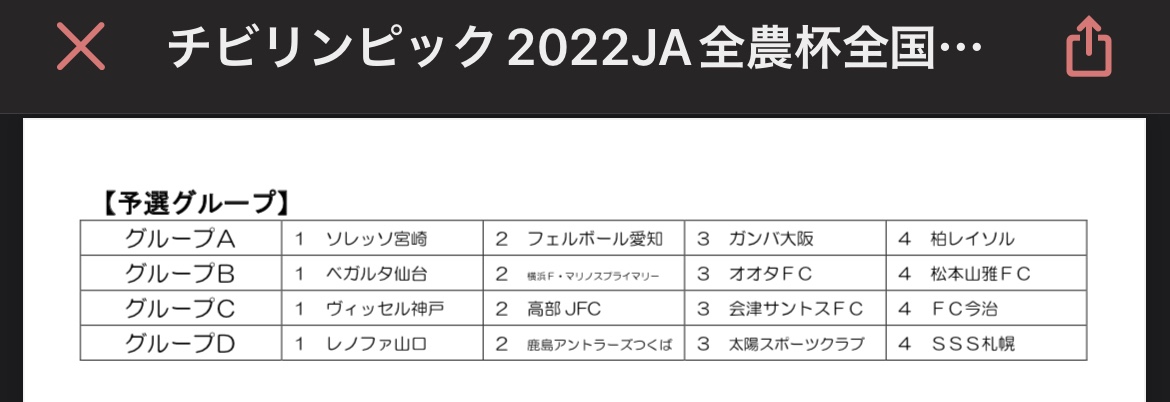 チビリンピックの組み合わせが決定した