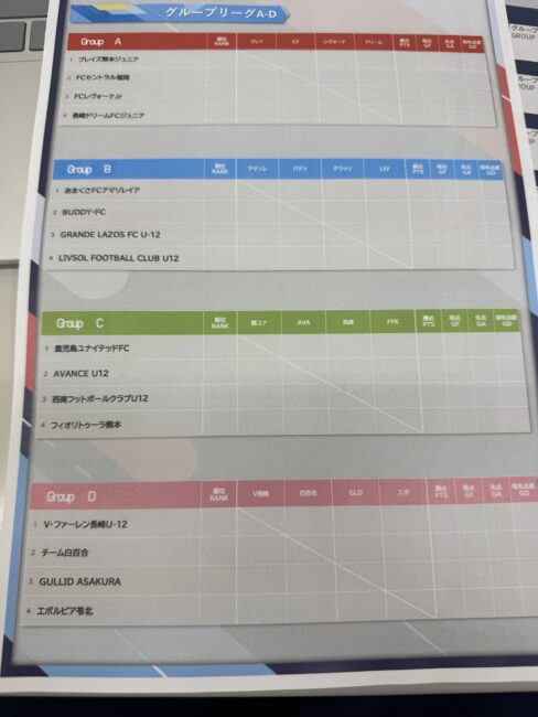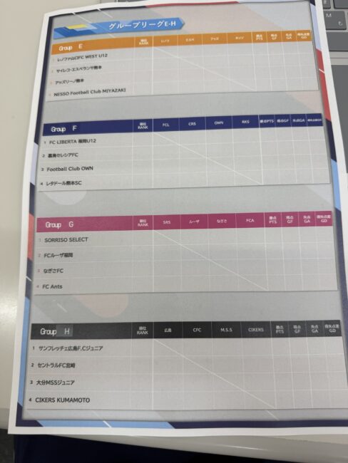 トーナメントはグループ2位以上で実施