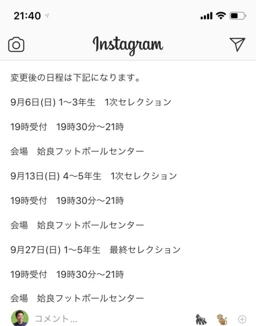 申し込んでくれたサッカー少年達の安全を思うと思い切って先延ばししようと決断