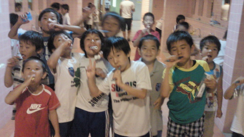 消灯前の歯磨き