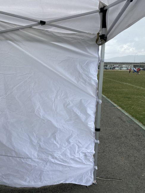 あまりにも寒くテントの横に幕を張ったら