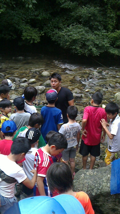 天気も大丈夫川遊びスタート川マスターのシゲキの説明はほとんど誰も聞いてない(笑)ニジマス捕まえてさばいて焼いて食べる最初のびしょ濡れは予想通りリオン現時点では20人ほど泳ぎ始めた…このままバスに乗って行くのに子供は自由だな♪ ツイート