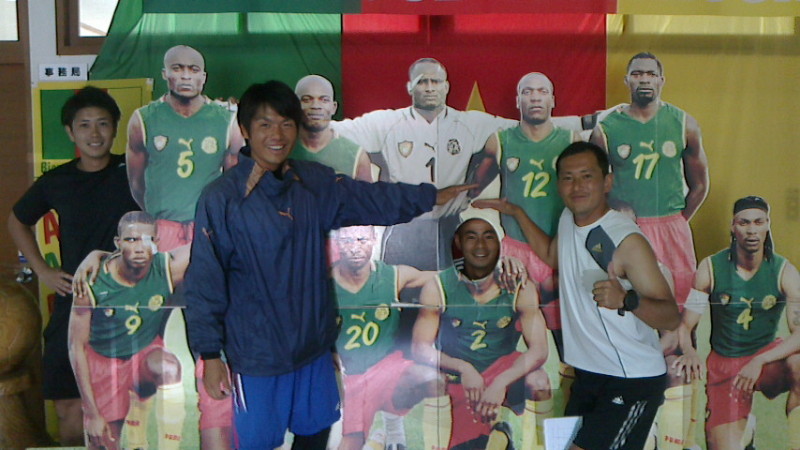 カメルーン代表のパネルに顔を入れる
