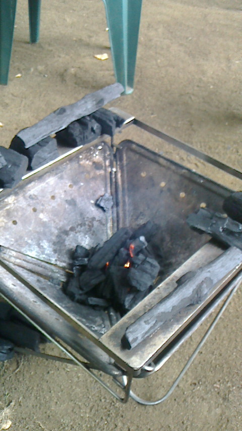 俺は繊細なんで綺麗に炭を組み扇ぐ必要なし