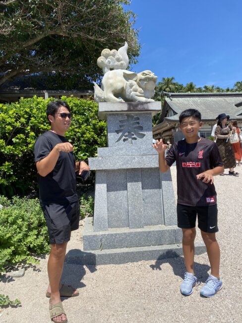 楽しげにシーサーポーズなんかしたりして、